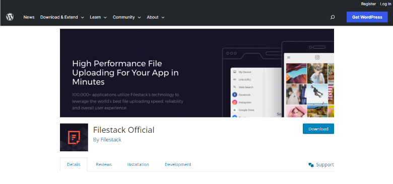 The Filestack WordPress Upload plugin simplifies adding files to your website. Visitors can easily upload files from their computers and use files from online storage services like Facebook, Instagram, Google Drive, and Dropbox. You just need to insert a special code into the post or page where you want the uploaded file to appear.